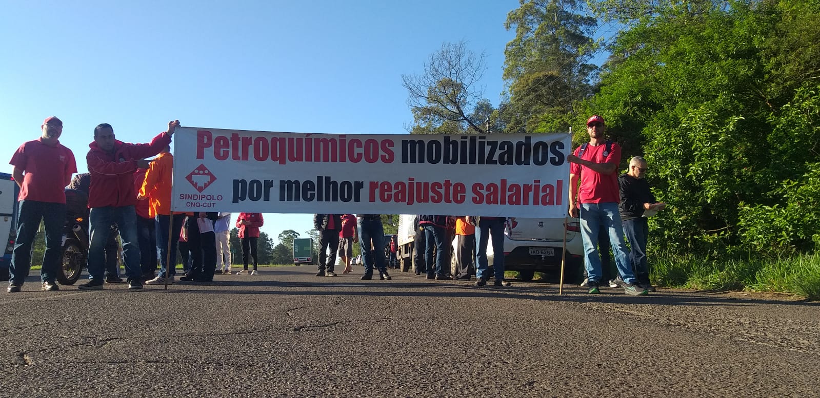 Os trabalhadores do Polo Petroquímico de Triunfo-RS estão realizando, na manhã desta quinta-feira (17), um ato na via de acesso