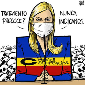 A “capitã Cloroquina” inclusive foi responsável pela implantação do TrateCov, um aplicativo do ministério que receitava cloroquina e outros remédios ineficazes contra a Covid-19, inclusive para crianças. Por esses e outros crimes, ela teve que prestar depoimento à CPI do Genocídio e agora terá seus sigilos telefônico e telemático quebrados.