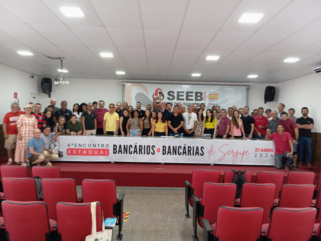 Cumprindo com o calendário rumo à Campanha Nacional Salarial 2024, neste sábado (27), funcionários dos bancos públicos e privados estão participando do 4º Encontro Estadual dos Bancários e Bancárias. O encontro acontece na manhã deste sábado, no auditório do Sindicato dos Bancários de Sergipe (SEEB/SE).