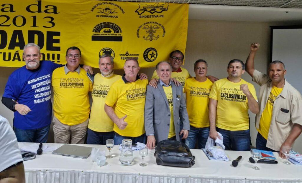Em uma reunião realizada na quinta-feira (06) de junho no Hotel San Marco, em Brasília, os presidentes dos sindicatos que integram as três federações de trabalhadores portuários brasileiros se reuniram para discutir e deliberar sobre a pauta de lutas. A reunião foi coordenada por Mário Teixeira, presidente da Fenccovib e secretário de Assuntos Jurídicos da CTB, José Adilson Pereira, vice presidente da CTB e presidente da FNE e Sérgio Gianetto (FNP). A pauta incluiu a retomada da avaliação da greve anterior, atualização sobre a Ação Direta de Inconstitucionalidade da Lei 12.815 (ADI 7591), e o plano de luta. A ADI 7591 foi ajuizada pela FENOP para questionar a exclusividade dos Trabalhadores Portuários Avulsos (TPAs).