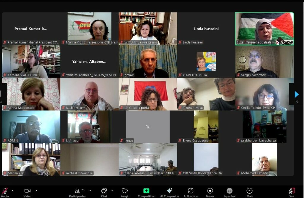 Nesta sexta-feira (29) a Central dos Trabalhadores e Trabalhadoras do Brasil (CTB) participou da Conferência de Mulheres: Lutas, Resistência e Guerra, promovida pela Federação Sindical Mundial (FSM) em colaboração com o Instituto Internacional dos Trabalhadores. O evento contou com palestras de Suzan Abdel Salam, que abordou a crítica situação das mulheres palestinas, e Dania Leyva, de Cuba.