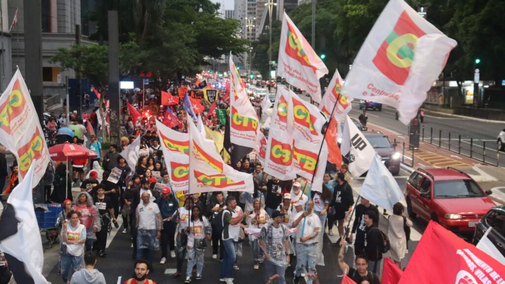 RenE Vicente, presidente da CTB-SP, destacou a solidariedade ao povo palestino e aos jovens das periferias, que enfrentam a violência policial. Ele reafirmou a necessidade de não conceder anistia aos golpistas e pediu uma redução da jornada de trabalho, criticando uma jornada 6×1 que considera uma forma de exploração moderna