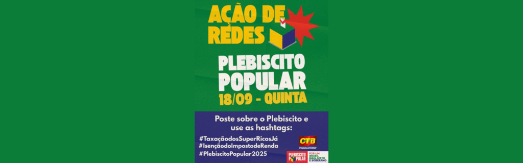 A ação desta quinta faz parte da campanha “Justiça Tributária Já”, organizada pelo Plebiscito Popular. Além da mobilização online, a iniciativa convoca a população a participar da consulta popular disponível em plebiscitopopular.org.br, onde é possível votar “SIM” em apoio ao projeto.