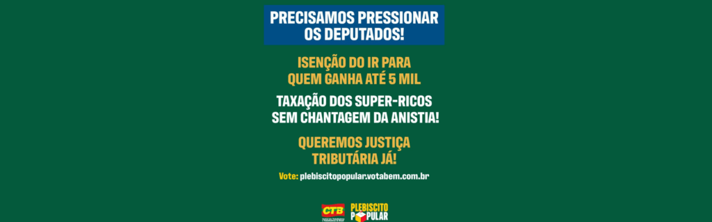 A CTB convoca a classe trabalhadora e toda a sociedade a se mobilizar em defesa da justiça tributária, garantindo a isenção do IR para quem ganha menos e a taxação dos super-ricos.
