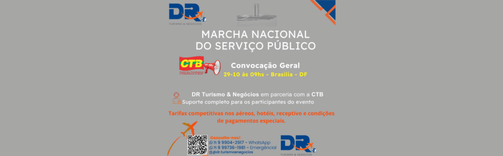Para facilitar a participação, a DR Turismo & Negócios firmou parceria com a CTB e oferecerá suporte completo aos participantes, com tarifas competitivas em passagens aéreas, hospedagem, receptivo e condições especiais de pagamento.