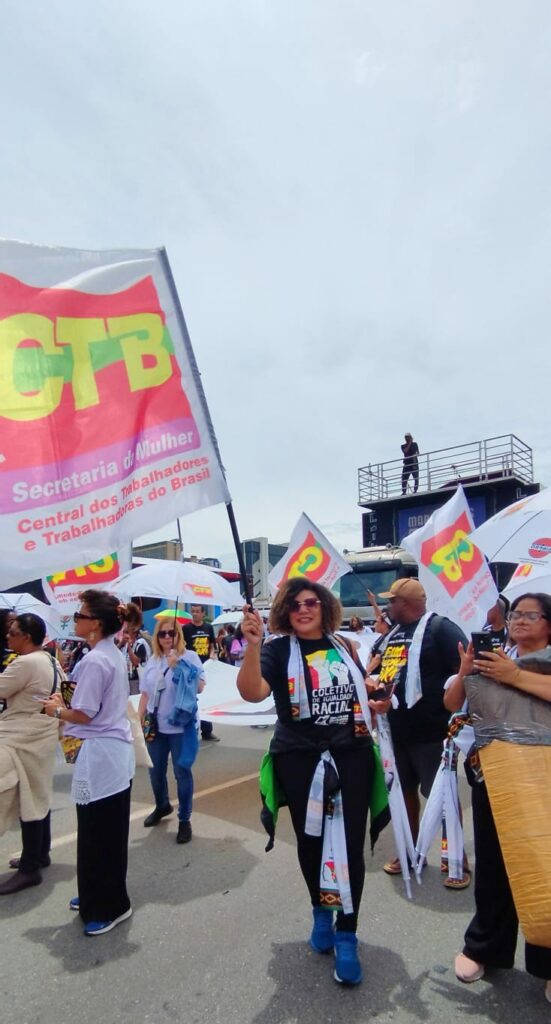 Na manhã desta terça-feira (25), a Central dos Trabalhadores e Trabalhadoras do Brasil (CTB) marcou presença na Marcha Nacional das Mulheres Negras, realizada em Brasília sob o lema “Reparação e Bem Viver”. A mobilização reuniu milhares de mulheres de todo o país, reafirmando a força política das mulheres negras na defesa dos direitos humanos, da justiça social e da transformação estrutural no Brasil.