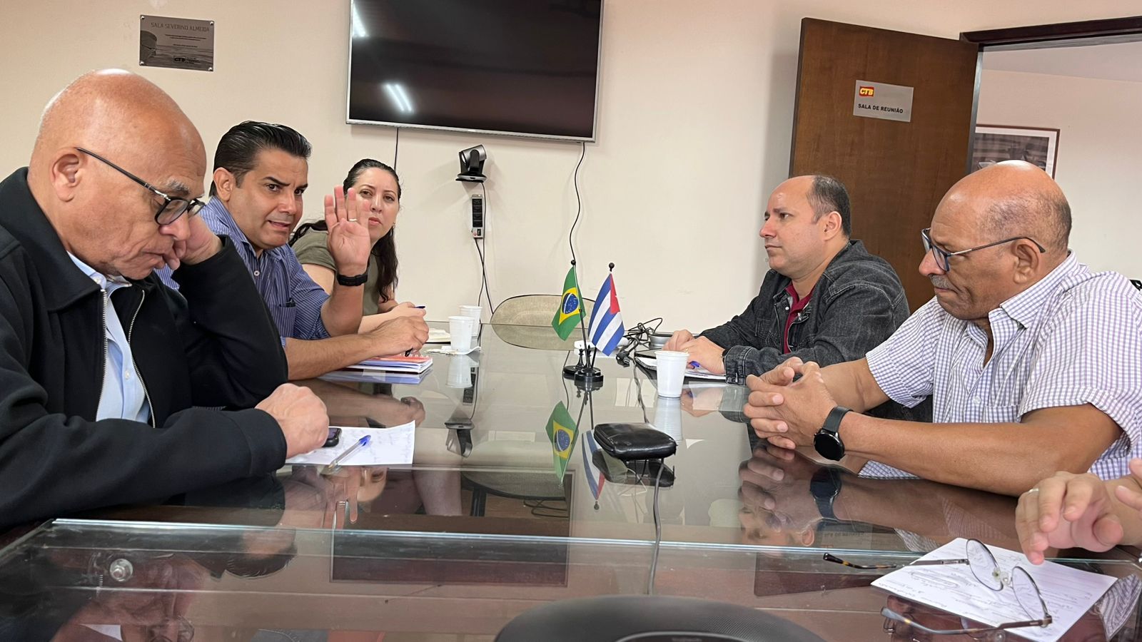 Na manhã desta terça-feira (20), a Central dos Trabalhadores e Trabalhadoras do Brasil (CTB) realizou, em sua sede, uma reunião com representantes do Consulado de Cuba no Brasil, em um encontro de caráter político, solidário e internacionalista. A central recebeu o Cônsul – Assuntos Consulares, Miguel Antonio Rodríguez González, e a Cônsul Patricia García Espí, para um diálogo voltado à manifestação de solidariedade ao povo cubano, à defesa da autodeterminação dos povos e da soberania nacional, diante do atual cenário de tensões internacionais na América Latina.