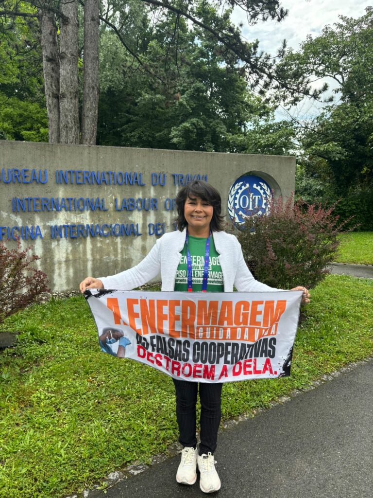 Para que a denúncia ganhasse forma internacional, a diretora do Sindsaúde Ceará, Martinha Brandão, através da articulação do Sistema Cofen/Corens e com indicação da Central dos Trabalhadores do Brasil (CTB), esteve na sede da OIT, em Genebra, para compreender o funcionamento do organismo e os caminhos formais para transformar a indignação dos trabalhadores em um processo sólido, responsável e juridicamente fundamentado.