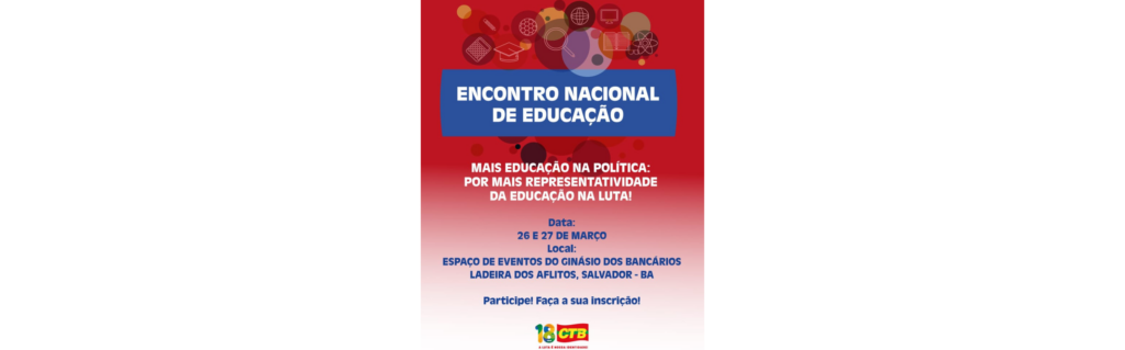 A Central dos Trabalhadores e Trabalhadoras do Brasil (CTB) promoverá, nos dias 26 e 27 de março de 2026, o 4º Encontro Nacional de Educação, em Salvador (BA). A atividade reunirá dirigentes sindicais, educadores, militantes e representantes de movimentos sociais para debater o fortalecimento das políticas educacionais como eixo estratégico na luta da classe trabalhadora.