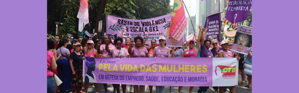 Para a CTB, o 8 de Março é uma data de resistência e organização das mulheres trabalhadoras. A central destaca que as mobilizações também levantam pautas como a valorização do trabalho feminino, a igualdade salarial, o enfrentamento ao assédio e a defesa de melhores condições de trabalho.