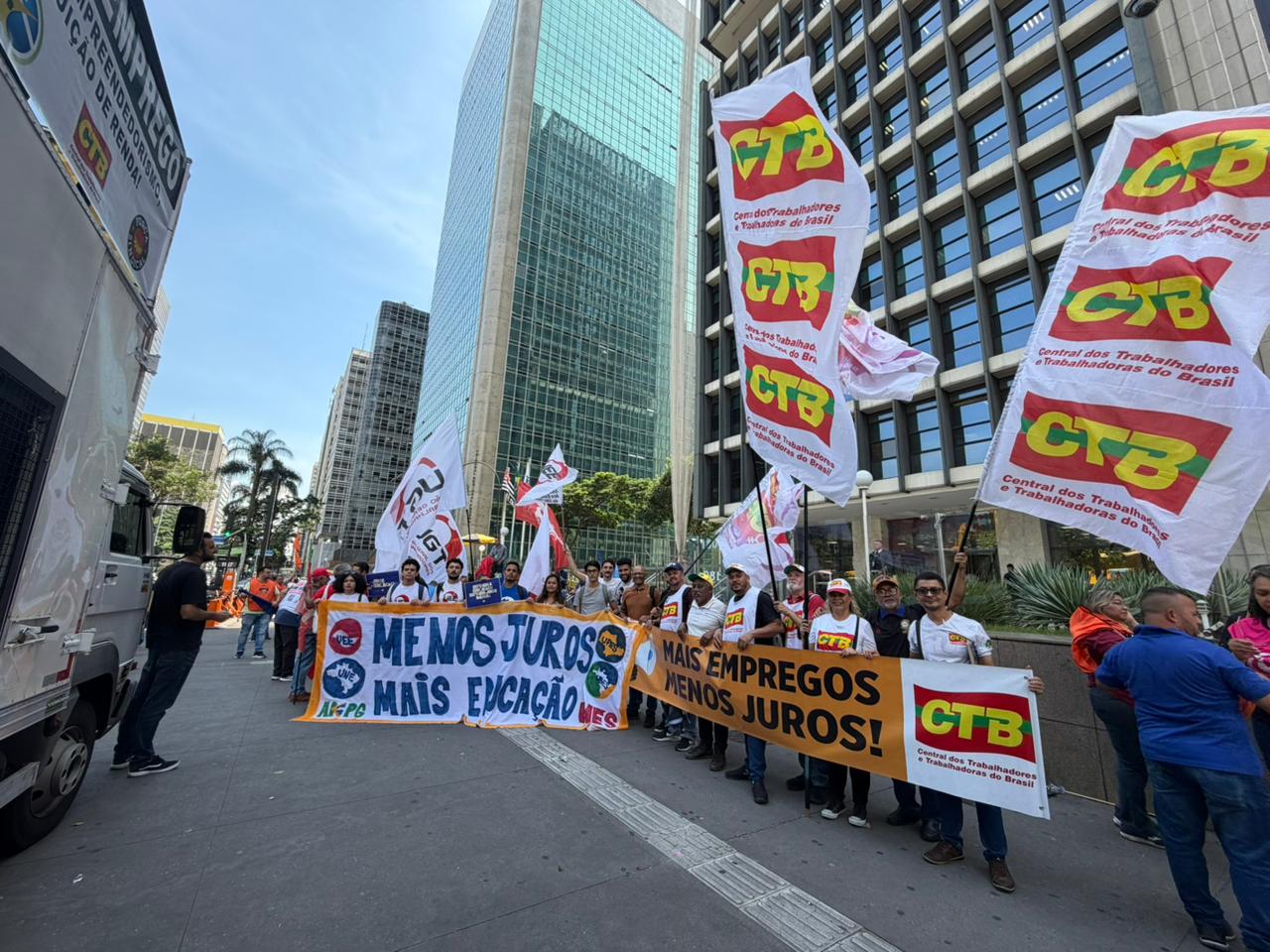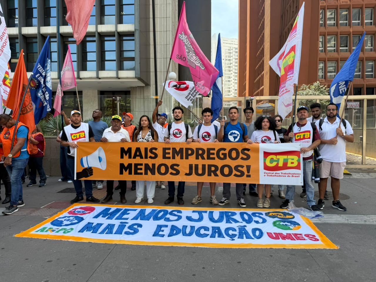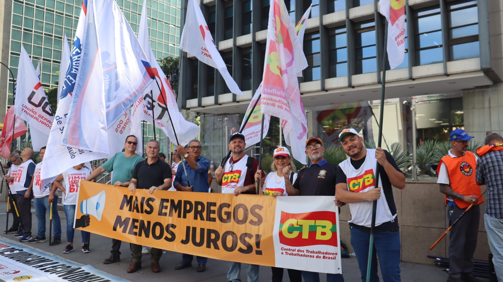A Central dos Trabalhadores e Trabalhadoras do Brasil (CTB) participou de um ato em defesa da redução da taxa básica de juros (Selic), realizado na véspera da reunião do Comitê de Política Monetária (Copom), do Banco Central. A mobilização reuniu representantes de diversas centrais sindicais e teve como foco a retomada do crescimento econômico, com geração de emprego e renda.