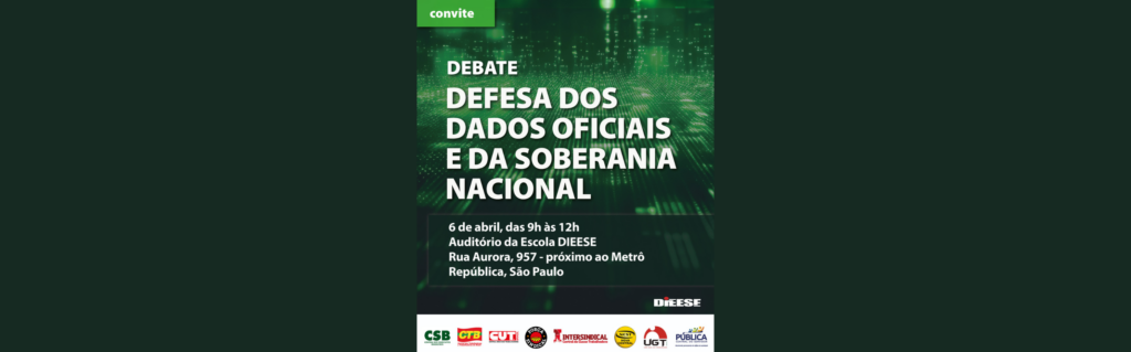 O Departamento Intersindical de Estatística e Estudos Socioeconômicos (DIEESE), em conjunto com as centrais sindicais — CSB, CTB, CUT, Força Sindical, Intersindical, UGT e Pública — promove, no próximo dia 6 de abril, o debate “Em Defesa dos Dados Oficiais e da Soberania Nacional”. A atividade acontece das 9h às 12h, no auditório da Escola DIEESE, no centro de São Paulo.