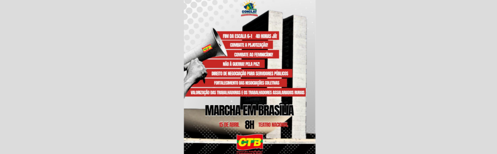Marcado para o dia 15 de abril, o ato na capital federal deve reunir milhares de trabalhadores e trabalhadoras em torno de uma pauta que combina reivindicações históricas com desafios atuais do mundo do trabalho. Entre os principais pontos estão o fim da escala 6×1, a redução da jornada para 40 horas semanais, o combate à pejotização e a defesa dos direitos sociais.