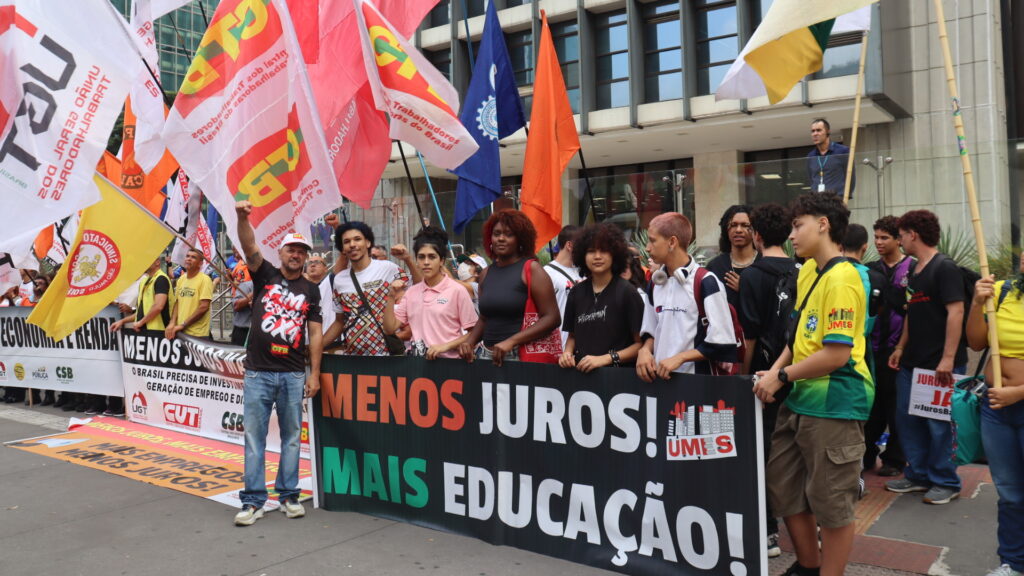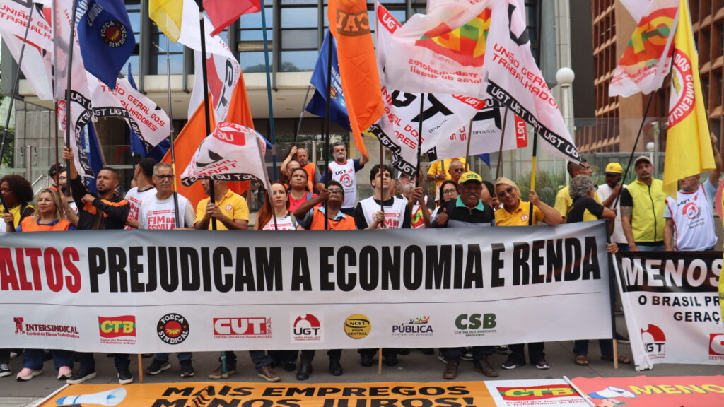 Durante o ato, a CTB reforçou a defesa da redução imediata da Taxa Selic, atualmente em 14,75% ao ano, apontando que o atual patamar compromete o desenvolvimento econômico, encarece o crédito e penaliza diretamente a classe trabalhadora.
