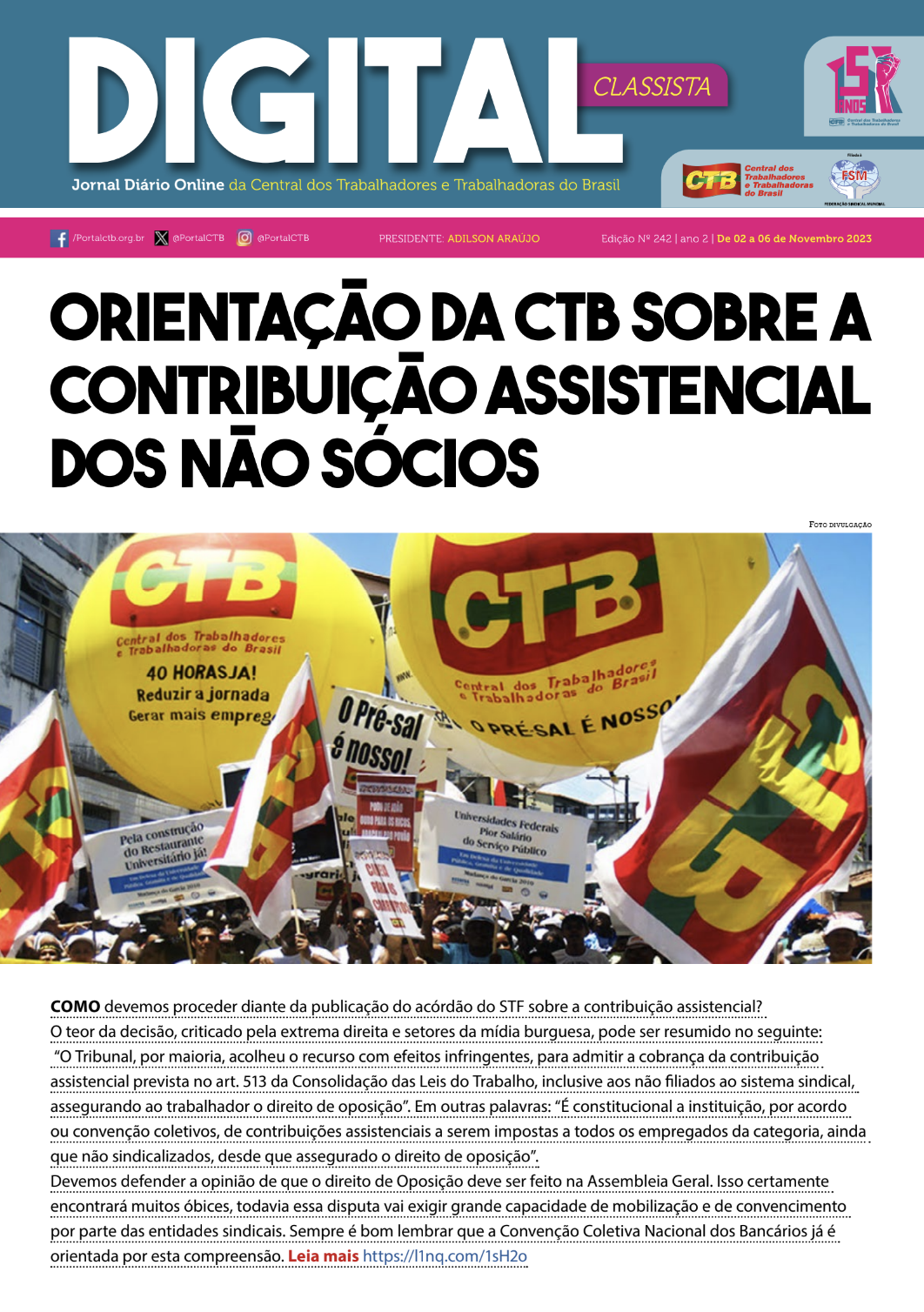 A Central dos Trabalhadores e Trabalhadoras do Brasil (CTB) realiza nos próximos dias 8 a 10 de novembro o seu