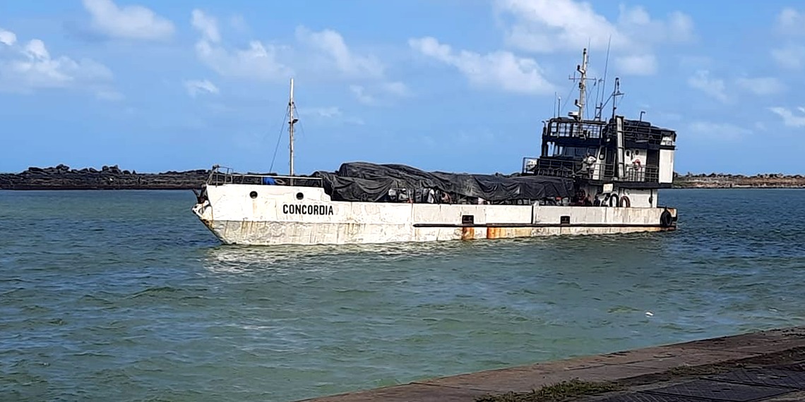A embarcação “CONCORDIA”, que transportava carga seca no curso de sua viagem entre Recife e Fernando de Noronha, em Pernambuco,