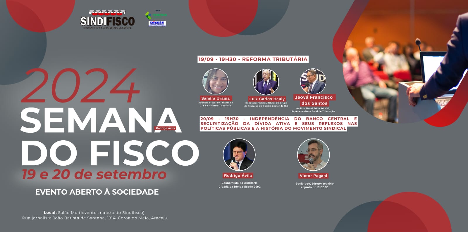 O Sindicato do Fisco de Sergipe (SINDIFISCO/SE) realizará na próxima semana, dias 19 e 20 de setembro, a Semana do