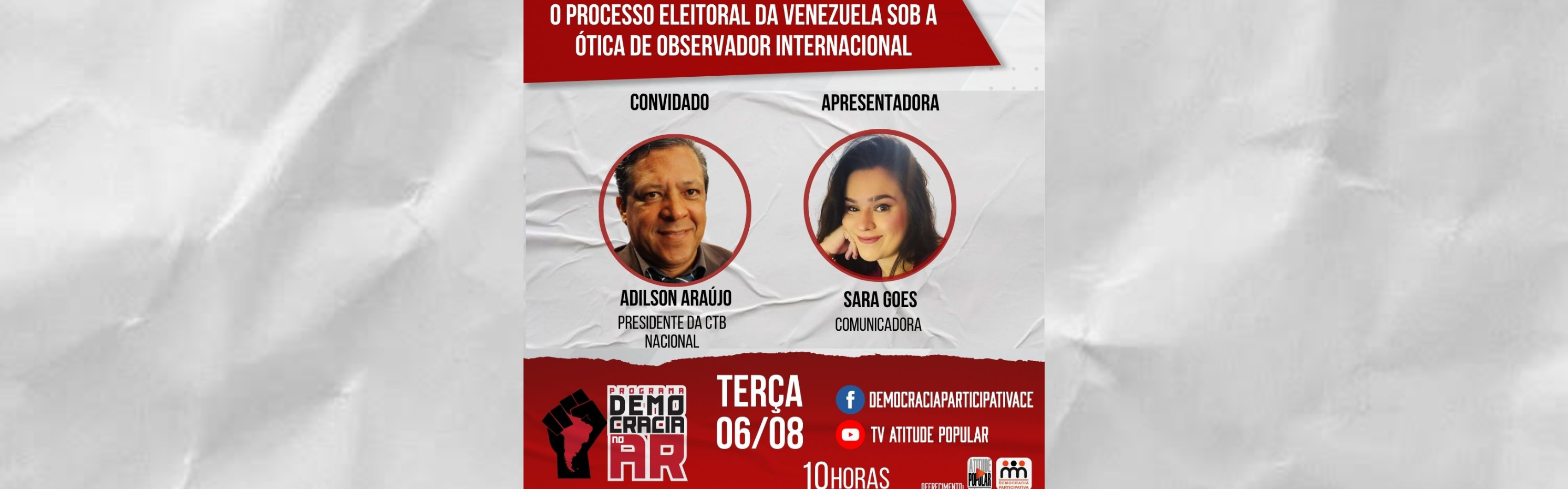Nesta terça-feira (06), o presidente nacional da Central dos Trabalhadores e Trabalhadoras do Brasil (CTB), Adilson Araújo, será o convidado